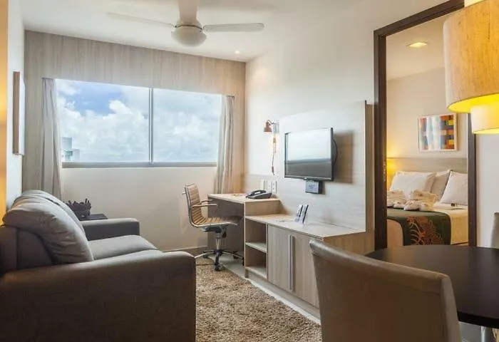 プ-ルを提供するFlat Beach Class Conventionアパ-トメントアパ-トメントは,Praça do Marco Zeroから8kmに位置しています. この施設があるのは1のベッドル-ム,1のバスル-ム及び台所です.